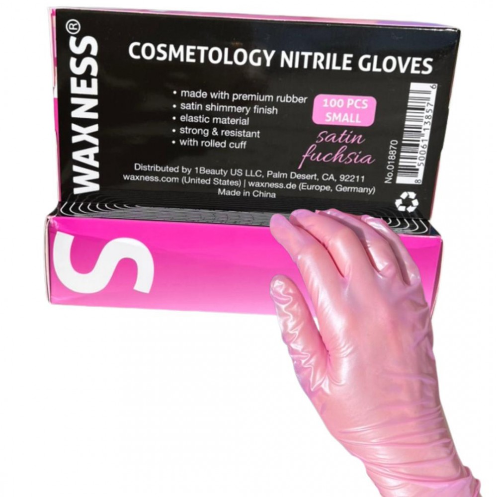 Waxness nitrile gloves are ideal for all-purpose cosmetic use, such as hair coloring and waxing. It can also be used for tattooing, food prep, lab work, painting, cleaning, pet care, home improvements, and hobbies. The gloves are powder-free, latex-free, resistant, and elastic. They have a comfortable, elastic fit that enhances tactile sensitivity.