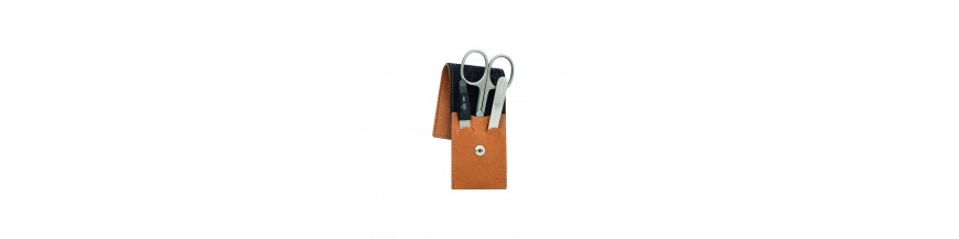 The case is lined inside and out with the same durable leather in the elegant colour of „Cognac.” This arrangement shows off the steel items to their best advantage.