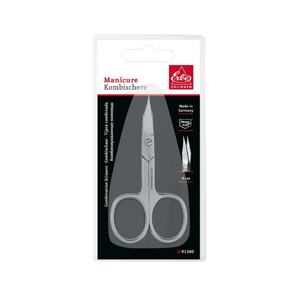 These combined scissors have very slightly curved cutting blades for precise shortening of fingernails and cutting the cuticles. The premium brand ERBE stands for daily care in the realms of manicures, pedicures, cosmetics, and shaving, using high-quality precision care instruments. These products are expertly sharpened by master craftsmen from Solingen, the „city of blades“ known worldwide for its craftsmanship. Their products are made through environmentally friendly, low-polluting, and energy-saving working steps.