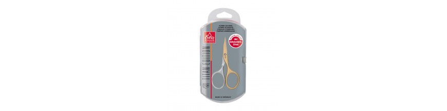The self-sharpening Erbe Solingen Combined Scissors Titan Edition is made of forged and hardened special steel, titanium coated. These combined scissors have very slightly curved cutting blades for precise shortening of fingernails and cutting of cuticles. 9 cm | 3.5 in.