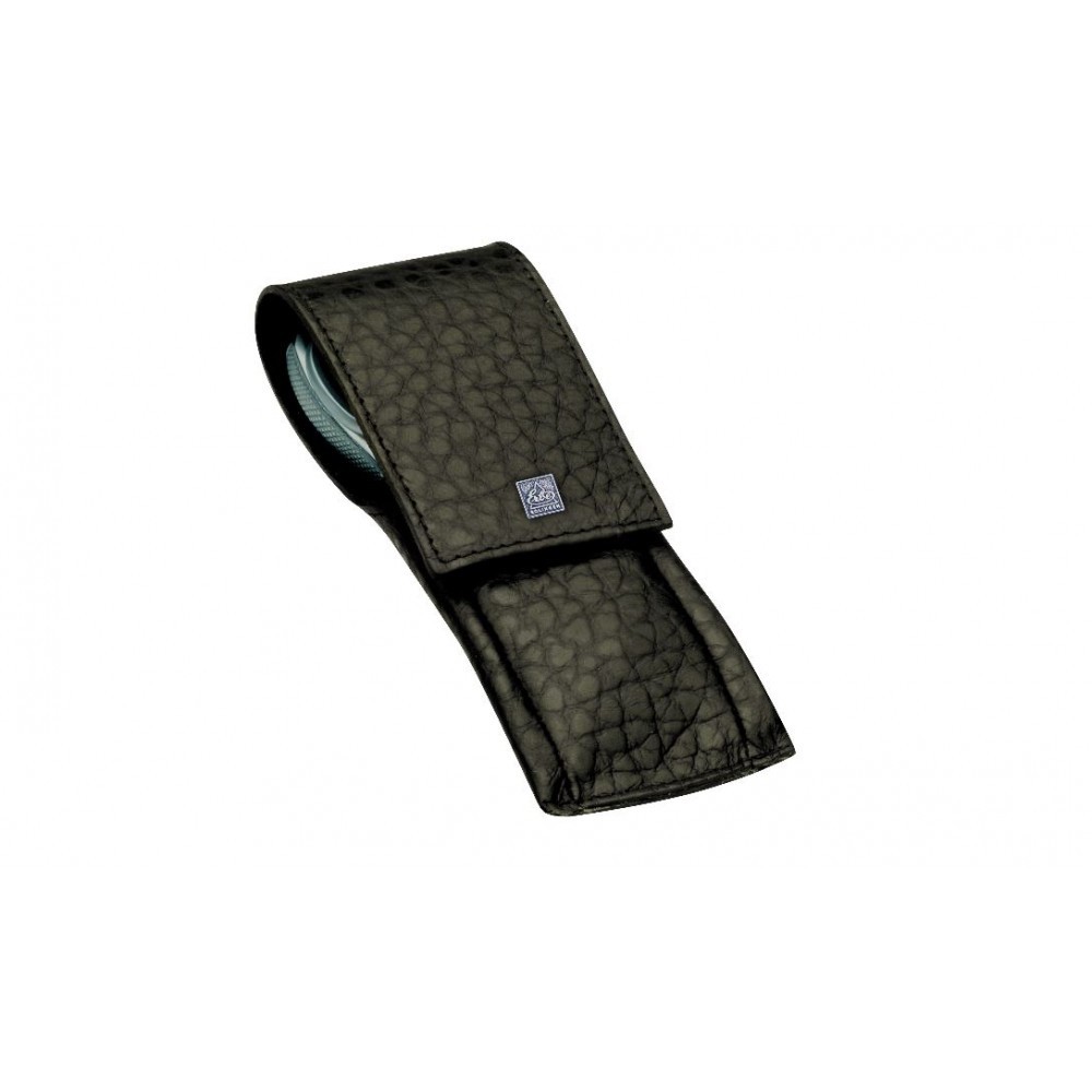 This genuine leather case are particularly popular with men. The brown case made of grained cowhide leather closes securely with practical press-button closure. Because of its small size, it fits into any pocket and is always ready to hand in an emergency.