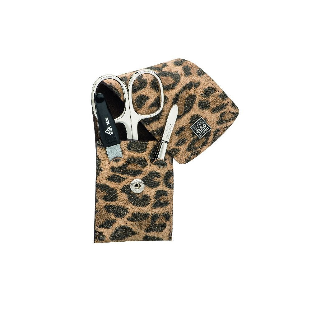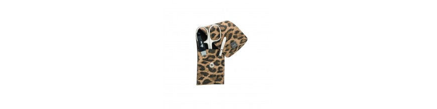 These manicure cases with the trendy Leo look are produced from genuine suede cowhide leather.
