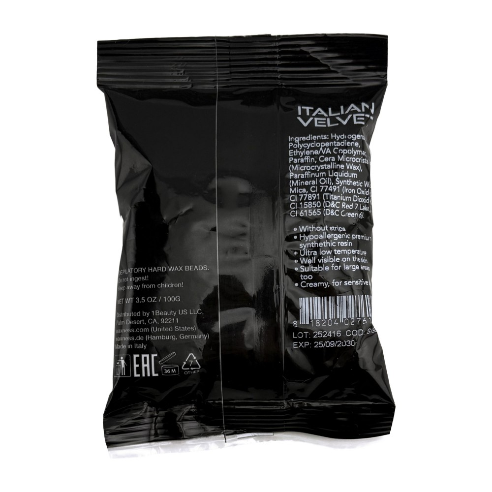 Waxness Italian Velvet Full Body Wax may be used on all parts of the body. Unlike no other wax, Italian Velvet is specially formulated to have additional pliability, making it easy to apply with a spatula on large surfaces. It forms a thin elastic film, grasping even the toughest hair at any length and it is removed without the use of strips.